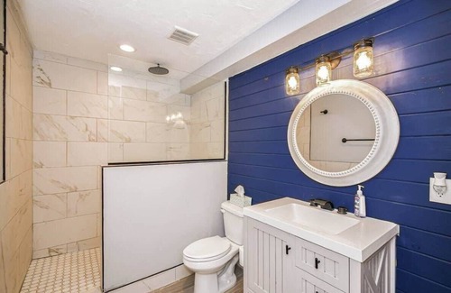 This elegantly designed home boasts five well-appointed bedrooms, ensuring that your entire bridal party can stay comfortably under one roof. Among its standout features are a fully equipped kitchen with seating for ten, a living room perfect for relaxation, and a fun-filled basement playroom that transforms into a movie theater, complete with beanbag seating and a popcorn machine. For those adventurous spirits, a rock climbing wall adds an exciting touch for guests of all ages. The charming decor throughout combines modern aesthetics with warm touches, creating a lovely atmosphere that's perfect for any pre-wedding festivities or post-ceremony receptions.