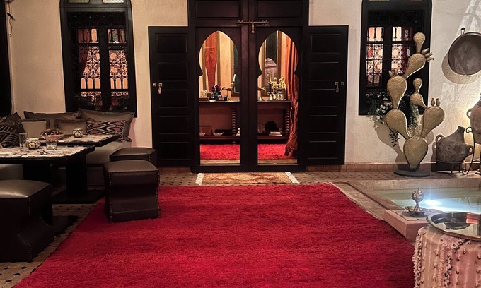This traditional Riad renovated by an international designer who spend a lot of time to shop each peace conscientiously choice with us to have this riad unique, will seduce you with charm and comfort. Nice patio with fountain and cute bassin. Located inside Medina area, part of the oldest Marrakech in Bab Doukkala area.