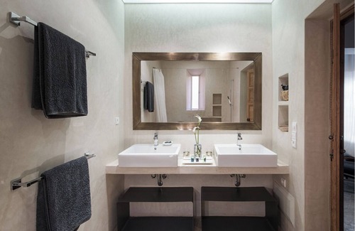A luxury riad entirely for your own! Ideal for families with children and friends! Easy access. Quiet and clean. Huge terrace with heated pool, sunbeds and parasols. Double patio. Separate living and dining room. Two kitchens. WiFi. Air conditioning. Breakfast included. Close to the restaurants, shops and the souk.