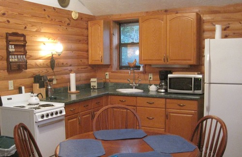 Deep in the Arkansas Ozarks, nestled in rolling hills, is working ranch. Only 12 miles southeast of Huntsville, 6 miles west of Kingston, we are located at the crossroads of the Ozarks. Eureka Springs, Fayetteville, and Springdale are about 45 minutes away. The scenic Buffalo River is just 22 miles over mountain roads. On the screened in porch of this lovely cabin, you can relax and breathe the fresh air. For the more energetic, miles of hiking and riding trails, also accessible by mountain bike, lie right outside the door. The cabin can accommodate up to four guest with one bedrooms and one sleeper sofa. This cabin feature a full kitchen, Living area, bedroom with a king size bed and large bathroom. If you have special needs this cabin is fully handicap accessible. This is a very private setting with dark night skies, and a large screened in porch which is overlooking one of the ponds on the property. If you are looking for a relaxing, beautiful, quite place to get away from it all this is it. Come enjoy our property we would love to have you! Hot tub not available.