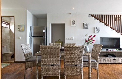 The recently refurbished Sawah Duplex, is a cosy three-bedroom town house featuring kingsize bedrooms, spacious bathroom and fully equipped kitchen in an open plan living, dining area. The highlight of this villa is the master bedroom boasting one of the best views in Bali from its balcony, making this home perfect for romantic couples & traveling families looking for a peaceful resort with a friendly atmosphere.
