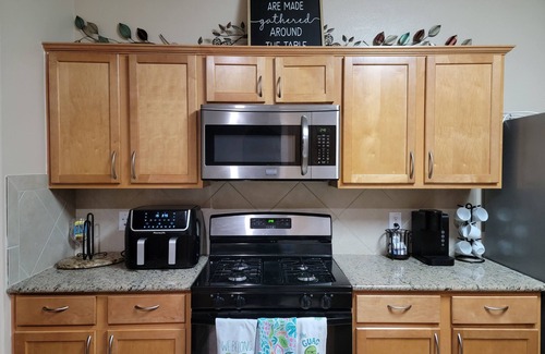 Your home away from home! Traveling starter kit provided including toiletries. Kitchen ready with pans and kitchen utensils, and dinnerware for your cooking needs. Extra linen provided.