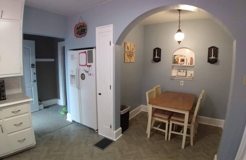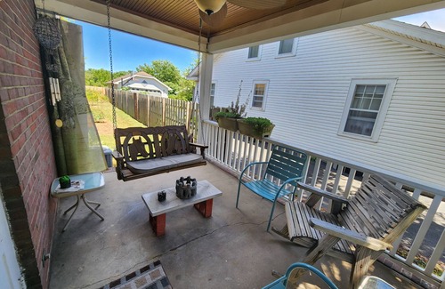 Older home with lots of character, walking distance to downtown Richmond. Very convenient location, close to anything you want. Located about 2 miles off of I-75. The house has 2 bedrooms, and 1 bath. There is a queen size bed in both of the bedrooms, and a futon in the living room. If you like the outdoors, we have a side porch with a swing, and a sitting area in the yard with a fish pond. The driveway goes behind the house for parking and is quite narrow, which can be a challenge for large vehicles. There is plenty of room in the driveway out front for parking if you are unable to pass through, which is also safe. The driveway side of the backyard is open, so the yard is not fully fenced.