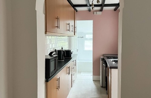 The apartment consists of a large lounge area with smart TV, broadband, comfy sofa and dinning area. The kitchen is equipped with a fridge, gas cooker and oven, microwave, toaster & kettle. Some tea, coffee, sugar and biscuits are made available.