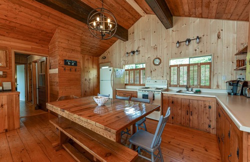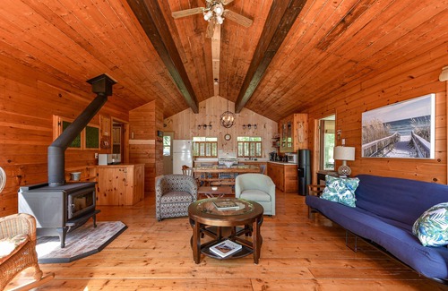 Included: 3 kayaks, 2 SUPs, a large dock to handle up to three boats, fire pit, full kitchen, full bathroom, large lake-facing deck, and open concept kitchen/living room w/ a wood stove. There are three bedrooms in the main cottage, two with queen beds and one with a set of bunk beds, a double futon in the living room plus a full bathroom. The bunkhouse has a queen bed and a set of bunk beds. ***The wifi is super fast now, up to 935 mbs!***