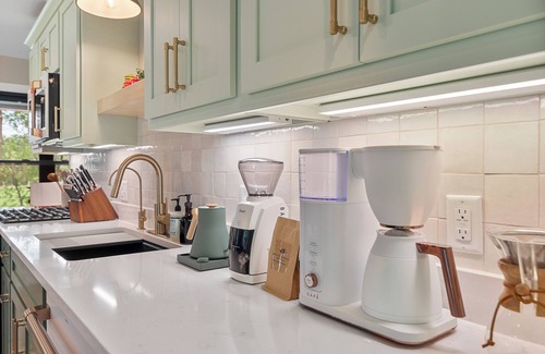 Indulge in a variety of coffee brewing methods, whether it be drip, pour-over, or French press. While you are waiting for your coffee to brew, put a record on the turntable and enjoy the tunes.