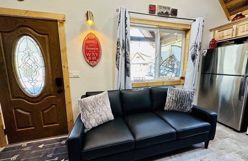 This newly built cabin (2022) is located in beautiful Riggins, Idaho amongst the mountains, the river and the trees. As you approach the cabin you are greeted by a spacious front porch offering great views of the Salmon river and a great place to sit and take it all in. Walking into the cabin you are welcomed with modern accents and eclectic pieces reminiscent of Riggins and its early beginnings. Looking up you will find the ceilings adorned with warm wood and skylights that bring in natural sunlight during the day. You immediately enter the great room where you can relax and unload from a day full of adventures or move to the kitchen outfitted with granite countertops, full sized appliances including a gas range, microwave, dishwasher and fridge to create a memorable meal. Outside is also a George Foreman grill for those who enjoy grilling up their favorite meat, veggies or fish! Off the great room is the spacious master bedroom including a queen sized Purple mattress, massage chair, closet and ensuite bathroom. The ensuite bathroom includes a beautiful and amazing rain shower with tile and stone accents, gorgeous granite countertop with vessel sink and toilet. In the great room is a spiral staircase that leads to the second bedroom (loft) that includes a queen sized Purple mattress for resting after a full day of fun. This cabin offers amazing views of the Salmon River and the surrounding area. It is located within walking distance to everything downtown Riggins has to offer. The community of cabins is private and quiet. Perfect for outdoor enthusiasts who enjoy fishing, hunting, hiking, rafting, jet boating and the list goes on. Or it could be perfect for those looking for a nice quiet get away to work or just sit on the deck and enjoy the sound of the river. Whatever your reasons, pack your bags, bring the cooler filled with food, your favorite beverages and enjoy nature at its finest!