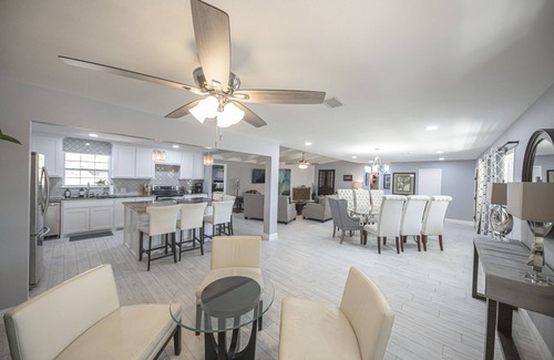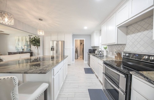 Fully Equipped Kitchen: Prepare meals or cater your celebration in the spacious kitchen, allowing you to keep your wedding party fed and happy during your stay.