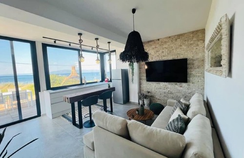 The house has two bedrooms with a double bed, a bathroom, a shower with a view of the sea from each room. Living room, kitchen with exit to the terrace that overlooks the beach. 5