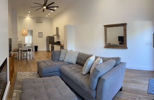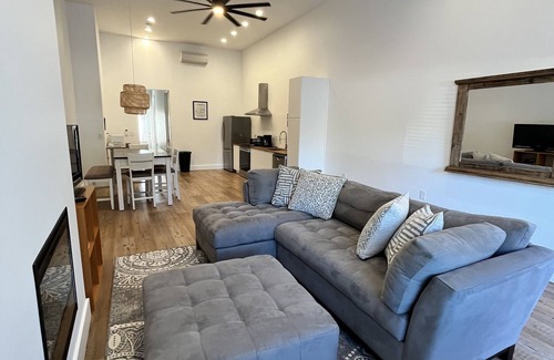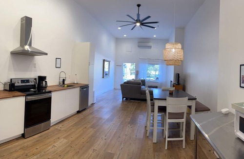 This newly renovated warehouse style apartment is centrally located in The Depot District. Far enough for peace and quiet at night, yet close enough to walk to any shop, restaurant, bar or the BEACH!!! It's ground level, so there are no steps for in and out. It's one level and can accommodate two people comfortably. Just across the street from the Community Hall.