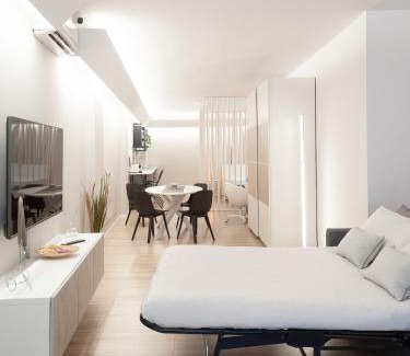 Rimini Centro Loft Open Space Titan's Lair offers accommodations in Rimini, 1.7 miles from Rimini Prime Beach and a 17-minute walk from Rimini Stadium. During your time at this recently renovated apartment, which dates back to 2010, you'll have access to free Wifi. Rimini Fiera is 3.4 miles away and Viale Ceccarini is 7.2 miles from the apartment. The air-conditioned apartment also offers a flat-screen TV, a fully equipped kitchen with a dishwasher, a seating area, washing machine, and 1 bathroom with a bidet and a shower. The accommodation is non-smoking. There is a coffee shop, and a mini-market is also available. A bicycle rental service is available at the apartment. Rimini Train Station is a 16-minute walk from Rimini Centro Loft Open Space Titan's Lair, while Fiabilandia is 3.3 miles from the property. Federico Fellini International Airport is 3.1 miles away.