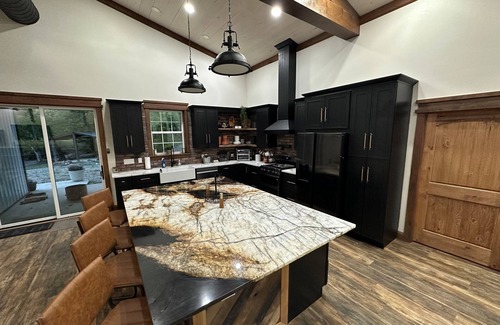 We offer a FULLY equipped kitchen with beautiful appliances, gas stove, Ninja Keurig/standard coffee maker, pot filler, Ninja oven/air fryer, Ninja mixer, Ninja Blender, Ninja cookware, bakeware, outdoor melamine plates for your nights eating outdoors on the amazing patio, etc.