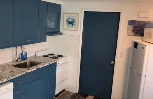 Like all Ritchie Village Units, The Stone Crab is a ranch duplex with no steps, private garage entry, in unit laundry and full, while modest-sized kitchen. Stove, dishwasher, microwave, fridge, and all the amenities are included. The bathroom has a full tub-shower combination.