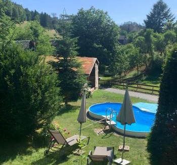 This property offers access to a patio and free private parking. Outdoor seating is also available at Ritschel Alm Limbach. With free Wifi, this guest house features a satellite TV, a washing machine, and a fully equipped kitchen with an oven and microwave. Towels and bed linen are offered in the guest house. The accommodation has a fireplace. You can play table tennis at the guest house. Guests can swim in the outdoor swimming pool, go cycling or hiking, or relax in the garden. Erfurt-Weimar Airport is 48 miles from the property.