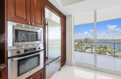 Luxurious living at its finest! Enjoy this spectacular residence from the huge balcony opening off the living room and all three bedrooms with great views of the Inter coastal at sunset from this new-ultra-luxury Residence. The expansive views from this three bedroom unit encompass the inlet, West Palm beach and the Inter coastal. This spacious condo has a gourmet kitchen, living room, dining area, laundry room and a large master suite with Marble floors throughout, Custom Kitchen Cabinets, Granite Counter tops and Miele appliances.