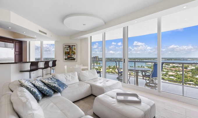 Everything about this apartment is top of the line, first class and immaculately clean. Features stunning 180 degree postcard-perfect views. This residence features three bedrooms with two and a half bathrooms. We welcome responsible guests seeking to enjoy the finest that Palm Beach offers in a serene and upscale setting.