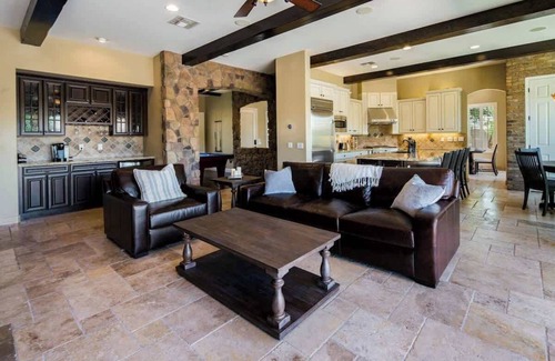 The Ritz Ocotillo home is located on the lake in a tranquil, gated-community. Designed with your entertainment in mind, this home includes a Sonos sound system that can be heard throughout every room, a heated pool, plenty of outdoor seating areas, a BBQ grill, pool table, and a fully stocked kitchen with Professional GE Monogram appliances and all the spices and pantry necessities to truly make the most out of your stay! Find us on Facebook and Instagram @RitzOcotillo.