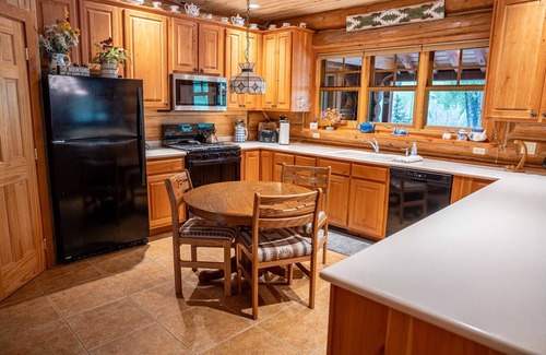 Ritz on the River - Gorgeous Log Cabin in the Heart of Town and Along the Lake Fork of the Gunnison offers an idyllic setting for your wedding stay. This charming log cabin embodies elegance and comfort while being conveniently located just four blocks from the center of Lake City.