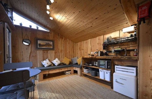 Rivendell Bothan is a cosy retreat where everything you need is thoughtfully arranged within the same room. Upon entering, you'll find a charming lounge area with comfortable bench seating, the perfect spot to relax and soak in the forest's serenity. There's also a quaint 2-seater table where you can enjoy meals with a view of the surrounding trees. For a restful night's sleep, you'll find double bunk beds that comfortably accommodate up to three people. The soft, rustic ambience of the space will have you feeling right at home. To make your stay even more comfortable, we provide a range of amenities. A microwave, hot plate, toaster, and kettle are at your disposal, along with crockery, cooking utensils, pots, pans, and dining plates, so you can whip up your favourite meals and savour them in the midst of nature. A small electric heating panel is available to keep you warm and snug during chilly evenings, ensuring a cosy atmosphere year-round. After a day of hiking and exploration, indulge in a warm, rejuvenating shower in the separate bathroom. It's the perfect way to relax your tired muscles and refresh yourself for the adventures that await. Step outside onto the delightful decking area, where you can sip your morning coffee, bask in the sunshine, or simply listen to the whispers of the wind through the leaves. The peaceful pond nearby adds to the tranquil atmosphere, and you may even spot some local wildlife coming to visit. Rivendell Bothan is designed to accommodate up to three guests comfortably. We offer WiFi access, so you can stay connected with the outside world if you choose to. Please note that due to the presence of a pond on the property, we cannot accommodate children under the age of 2 for safety reasons.