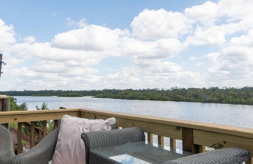 Enjoy our unique, peaceful and modern on the river cabin! Wake up to a mesmerizing river view from your private balcony or our dock! This is all you can ask for to relax, fish or just enjoy the day while watching dolphins, manatees and more at this unique and tranquil getaway. Bring your boat and dock at our private dock or enjoy fishing or sun bathing with your favorite refreshment. You can grill or just enjoy the water view from our gazebo! Close to many beaches and restaurants! Theres another Abnb on property, if rented you might have to share common areas.