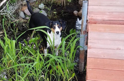 Cabin #2 - Newly renovated in 2021, this cozy cabin is steps away from the relaxing waterfront. Perfect for kayaks and canoes. Large deck with a propane grill. The river flows into Norway Lake. There is a swimming area in the river that has a nice sandy bottom and at most is around 4ft deep. It is an excellent area to lounge on a floaty or play water games. In the photos is resident dog, Nora.