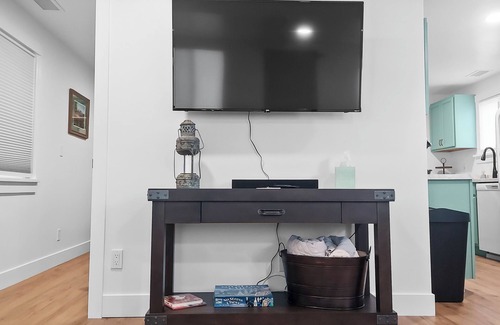 Newly renovated and equipped with everything you will need for a comfy stay. When entering the home, you will find a spacious living room with a Smart TV and comfortable theater style sofa. To the right, there is a table for two to enjoy your morning coffee. As you walk toward the kitchen on the right, you will find a work desk to catch up on emails or connect with friends. Our fully equipped kitchen is ready if a home cooked meal is desired. To the left of the living room is a single bedroom with a comfortable queen bed and a spacious shelving closet to unpack and feel at home. The bedroom connects to a full bathroom. The laundry area is furnished with a stacked washer and dryer. Out back you will find a roomy and fully fenced yard with a BBQ grill and outdoor furniture to enjoy an evening nightcap. It is truly home away from home.