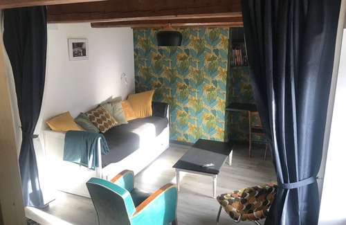 - 1st floor: TV/fibre lounge/office area, armchairs and sofa. The sofa can be converted into a 160cm bed => room fitted with blackout curtains to make an extra bedroom. Bathroom: Italian shower, washbasin, washing machine (iron, clotheshorse, hairdryer).