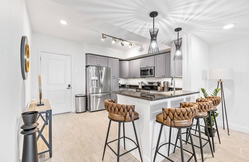Indulge your culinary tastes in the expansive, fully equipped kitchen complete with brand new top-of-the-line appliances and sleek finishes. Gather around the spacious dining table to enjoy your culinary creations while enjoying the company of loved ones. Afterward, unwind in the inviting living room, equipped with a 65-inch TV and ample seating for everyone to unwind and entertain.