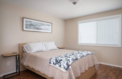 This spacious home has two good sized guest rooms and a large master bedroom. It is a split level home with one of the bedroom's on the main floor. This room has a queen size bed and separate access to the shared bathroom. We also have an additional room that is a meditation/sun room and a reading nook upstairs. It has a large lower deck that has direct views of the river and mountains. It also has a large upper deck that can be accessed from both the master and sun room.