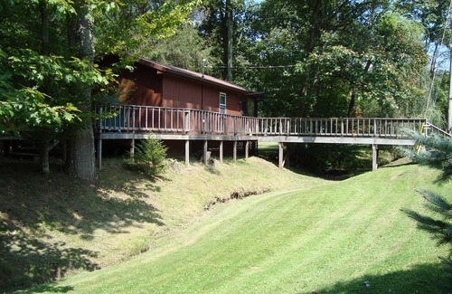 Trout fish in your front yard while your wife enjoys the hot tub on the deck. This 1 bedroom 1 bathroom cabin is perfect for a romantic getaway or a weekend fishing trip. Cookout on the deck with the propane grill or dine out in one of the nearby restaurants. The cabin has an efficiency kitchen and a futon couch for young children. Cabin is located across the river from the Monongahela National Forest where thousands of miles of hiking and mountain biking trails await you. Canoeing, fishing, hiking, mountain bike riding. It's all here, all that's missing is you.