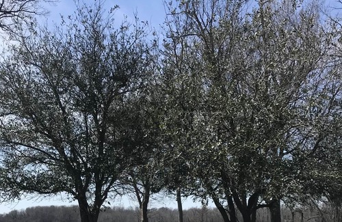 The yard is so green and lush, its full of nut tress, a small vineyard, and lots of squirrels, birds, and groundhogs.