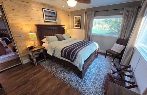 This fully furnished cabin boasts a plethora of amenities that cater to all your needs, including a state-of-the-art commercial kitchen ideal for catering large wedding parties and receptions. Enjoy the spacious screened-in porch adorned with comfortable seating and entertainment options, while the outdoor brick patio offers a cozy setting with fire ring views over the river. For guests looking for additional accommodations, we also have luxury RV sites available, ensuring that everyone can join in on your special day without sacrificing comfort.