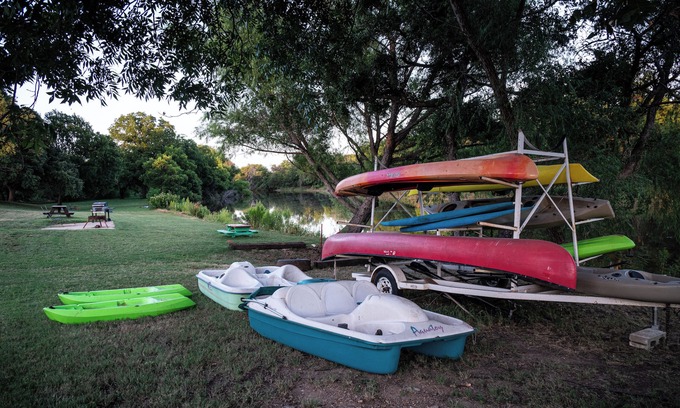 Relax with the whole family at this peaceful place to stay. Sit on the back porch over looking the Jim Ned Creek while watching the sun come up with your cup of coffee. Enjoy all of the native Texas wildlife that surrounds the creek bottom, some of the best fishing in Brown county, kayaking, paddle boating, swimming and family time. Located not far from town but you get the enjoyment of the country.