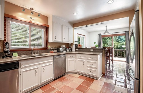 The second floor offers a river view bedroom affectionately named the 'River Room' with one full bed and an additional bedroom with two twin beds that share one large full bath. On the second floor you will also find a fully equipped modernized large kitchen with all the amenities and cookware. The dining area has a leafed table capable of seating up to six.