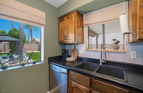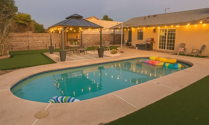 Welcome to your ultimate Yuma retreat! This 3-bedroom, 2-bathroom home comfortably sleeps 8 and is designed for relaxation, fun, and unforgettable memories—perfect for a family getaway, golf trip, or desert escape. Enjoy the convenience of a fully stocked kitchen for meals, snacks, or cocktails at home, and let the good times roll in the game room with air hockey, darts, arcade games, basketball shootout, and shuffleboard. Step outside to your private backyard oasis featuring a sparkling pool, putting green, outdoor bar, fire pit, and sun deck—ideal for lounging, grilling, and entertaining. Located just 17 minutes from the Colorado River and 20 minutes from the Imperial Sand Dunes, you’re perfectly positioned for boating, ATV adventures, and more. Plus, you're close to shopping, dining, and golf, making everything easily accessible. Whether you're here for family fun, river days, or desert rides, this Yuma home has it all—book your stay today and experience the best of Arizona living!