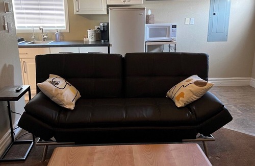 Quaint, adorable and separate 1-bedroom river-desert guest house located along the Colorado River between Parker and Blythe on CA Hwy 95. For location-Googl* Maps type "505 Mountain View Road Blythe". Two minute walk to a sandy beach and endless desert for off-road fun. Fully stocked kitchen, king size bed and TV. Living room has futon/couch and TV. Amazon Firesticks for TV's, WiFi and washer/dryer room. Comfortably sleeps 2, with the flexibility of 4 (2 small children). Plenty of parking for your boat, trailer and toy hauler.