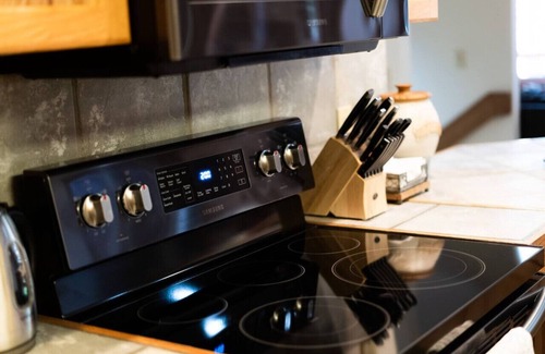 KITCHEN - Our fully stocked kitchen features everything you need to cook whatever you want for your friends and family. We have a stove, oven, coffee maker, microwave, and tons of small appliances, dishes and cookware. Please see our listing amenities for a comprehensive list.