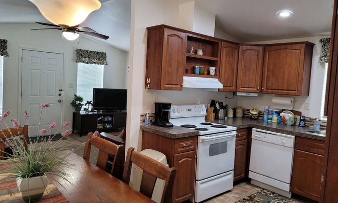 Great vacation location on the beautiful Colorado river! Our mobile home is perfect for a family of 4 to6 people, or just two people! Rainbo Beach Resort has every amenity you need for a fantastic time including launch ramp and docks, sandy beach on the river, private pool, restaurant and bar! Only 30 minutes from Laughlin Nevada. 15 Minutes from Pirates Cove, Park Moabi, and Needles Golf Course. NO pets. NO smoking. Enjoy