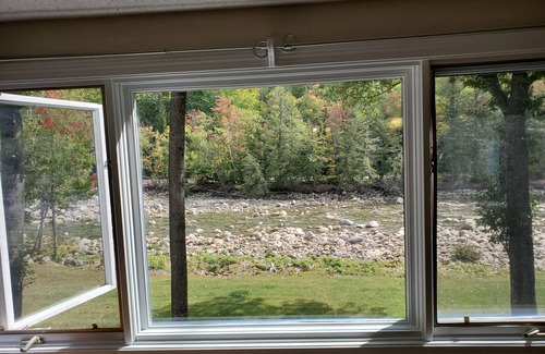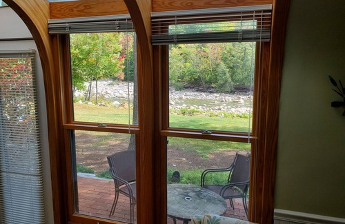 Fully furnished two bedroom/two bath condo with stunning river views from first and second floor. Enjoy your morning coffee on the patio overlooking the Pemigewasset River. Quite condo with 5 minute walk to shopping, dining and movie theater. With pull-out sofa, the condo sleeps 4. Fully equipped kitchen. New washer and dryer. Wood burning fireplace, all wood included. Plenty of parking.