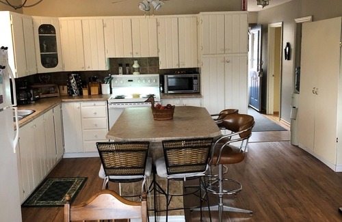 5. Bedding- We have sheets for all of the beds or bring your own. If you use our sheets and towels, we ask that you PLEASE start laundry on check-out day-soap provided (Our cleaners are not there long enough for multiple loads of sheets and towels). Leave the remaining laundry in front of the washing machine-sheets, pillow cases, and towels only. The master is a king size, middle bedroom has twin bunk beds, the third bedroom has a queen- sheets are in bin under the beds. Sofa bed in the living room full/queen size- sheets are in green bedroom closet. Downstairs sofa bed- memory foam topper and sheets (in bin) in the garage.