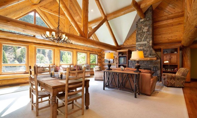 Retreat to this Salmon Riverfront 5,000s/f architect designed pristine log home with soaring ceilings, river views from every room, and total privacy. Fish, swim, and kayak right off the backyard. Or enjoy the sound of the river from multiple patios, deck, and inside the house. Within 30 minutes of EVERYTHING: 18 STUNNING riverside miles from Stanley, 24 miles to Redfish Lake Lodge, 7 miles to the Sunbeam Cafe, 8 miles to Sunbeam Hotsprings, and close to hiking and biking trails throughout the area. Play on the Salmon, in the Sawtooths, White Clouds and Frank Church, and then come home to a world-class estate nestled next to the river. (NOTE: THE DRIVING TIIMES SUPPLIED BY THE VRBO MAP ALGORITHM ARE ALMOST DOUBLED AS COMPARED TO ACTUAL!!!)