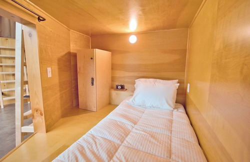 Our private lodge room features our "must stay in" hand-crafted glamping pods, expansive windows opening to the mountain and Warrior Ridge, and high speed wifi. Pods feature secure storage, luggage space, privacy curtains, convenient outlets, custom shelving, wall mounted lighting, and Egyptian cotton sheets. A charcoal grill, private campfire area, and outdoor seating is available steps outside of the main lodge room.