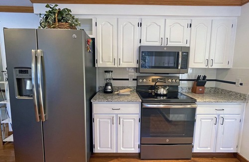 * Kitchen is fully equipped with all dishes, pots, pans and utensils needed to cook. NEW ALL STAINLESS STEEL appliances are provided INCLUDES: A professional 5-burner electric range, forced-air circulation CONVECTION oven, built-in microwave, dishwasher, stainless steel refrigerator, deep double black granite sink, smoothie/drink blender, coffee maker; and, of course, a bagel toaster.