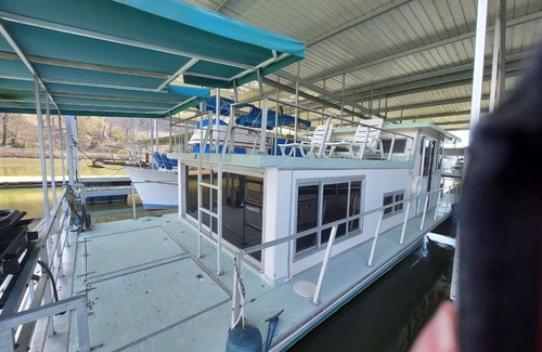"Discover the allure of waterfront living in Chattanooga, TN, aboard our quaint houseboat, nestled in a picturesque resort marina.