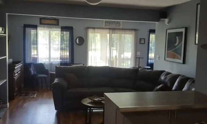 Relax and unwind on the river! Whether alone, a couple, group or family everyone will enjoy this beautiful home. Relax by the river, fire pit or fireplace (bring your own firewood) and enjoy! This home offers 3 bedrooms, 2 full bathrooms, kitchen, living room and some nooks and crannies to relax.