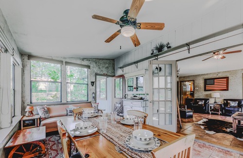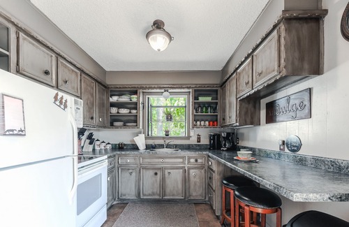 Ideal for a small family retreat or a romantic getaway, River Ridge Retreat has plenty of charm and character packed into its cozy 1,224 square feet. The two themed bedrooms and mountain-inspired décor throughout the home make it a unique and delightful space to relax and recharge. Plus, your furry friends are welcome too! With a fenced-in backyard and a few walking paths, your dogs will enjoy the adventure just as much as you.