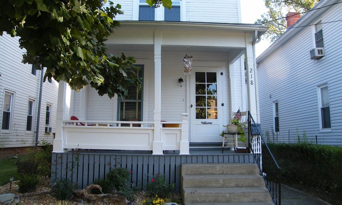 River Rock Cottage is a fully furnished 3 bedroom Victorian style home. The 2nd & 3rd bedrooms are adjoining and entrance to the upstairs bath from all rooms is through twin bedroom. Youll have the entire home for your family and friends. The inviting front porch is a great place to unwind and enjoy the sights and sounds of small town living. Our kitchen is fully equipped for your convenience and has everything you need to prepare a meal should you choose to eat 'in.' We have a grill for outdoor cooking and outdoor seating on the back deck for dining. Our large dining room table will accommodate your large family gatherings! We have wireless internet as well as cable TV in 3 rooms, with flat screen TV. We offer 3 bedrooms, one with a queen bed, 1 with a twin bed & trundle, (when requested), 1 with a full size bed, accessed through twin bedroom but can close doors for privacy. We also an additional twin bed roll away upon request. Our downstairs bath has a tub and tiled shower. There is a new bath with shower on 2nd floor.. River Rock Cottage has all you need for your family. From the time you walk up onto the nice & homey front porch until you leave, your needs will be met with all the amenities provided. We believe your stay at River Rock Cottage will hold many memories and bring you back time and time again and that you will be happy to share your discovery with your friends! The cottage is located 1/2 block from Historic Harmar District. Just up the street you will be able to cross over into historic Marietta, OH where you will find "shopping till you drop" and many restaurants, including outdoor dining & pizza pubs. At the end of the bridge, you may rent a bike to ride the 'walking trail' and cool off with an ice cream or cold drink at the snackbar there. Just across the street you will find Harmar Tavern, famous for 'fried bologna sandwiches' and they have a nice outdoor terrace! On the corner is the upscale Italian restaurant which offers terrace dining, Spagnas. Busy Bee Restaurant, on the corner at Harmar District is a local favorite featuring farm to table eating, for a a quick bite and a hearty breakfast! The Aquatic Park is near and you can walk to it on the walking trail in about 45 minutes. Seneca Lake is within driving distance if your prefer outdoor lake activities. Be sure to check out the museums that tell of the historic beginnings of Marietta. Marietta also holds an annual Sternwheelers Festival in September with the BEST fireworks ever! We hope to hear from you soon and can't wait for you to enjoy our little gem...River Rock Cottage!!!