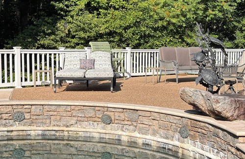 Outdoor Granite Bar & Waterfall: Picture this: a chilled drink in hand while the 10-foot waterfall cascades serenely into the pool. Take a sip, enjoy the view, and let the world melt away.