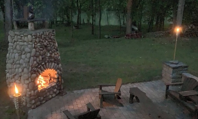 Start your mornings by lounging on the outdoor bed, soaking in the beauty of nature surrounding you. In the evenings, enjoy a cozy fire by the patio fire pit, perfect for roasting marshmallows or unwinding after a day of river activities. The cabin features a private dock, allowing you to bring your boat and explore the river at your leisure.