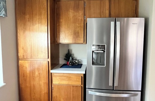 This home features a beautiful deck to sit on and watch the river and wildlife while having dinner or barbequing on the back covered dining area. The full kitchen has pots & pans, baking pans, mixing bowls, dishes, glasses, cups, coffee makers and Keurig, and many more amenities. There are some stocked items such as spices, oil, sugar, etc. The counter is comfortable to sit at or the dining table.